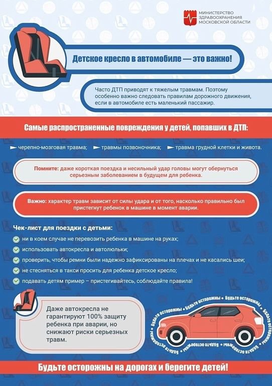 Использование автокресла обязательно для детей до 12 лет. Для наиболее безопасной перевозки в автомобилях важно следовать рекомендации по весу и росту. В большинстве случаев, дети до 4 лет должны сидеть в креслах, ориентированных против направления движения, чтобы снизить риск травм при аварии.