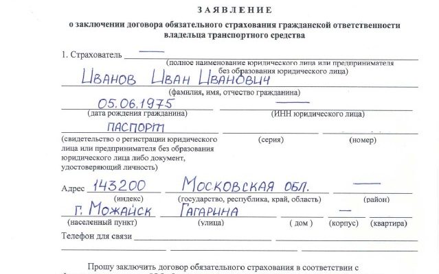 - Корректное заполнение данных о страхователе и объекте страхования