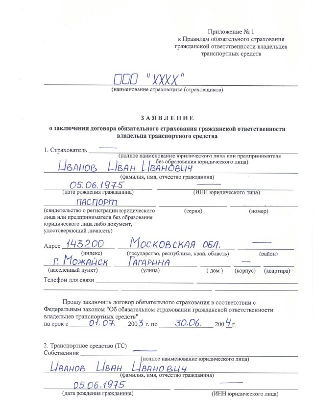 Корректное заполнение данных о страхователе и объекте страхования